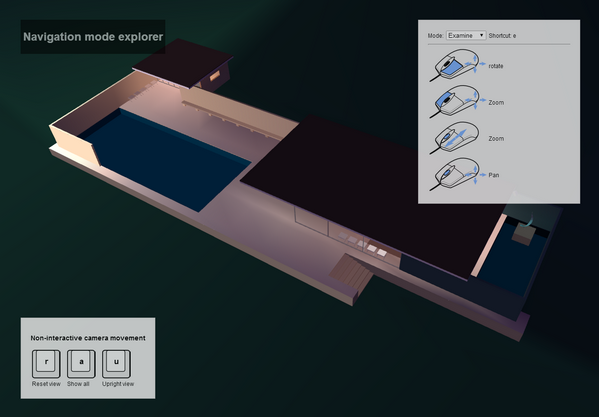 The allowed interactions are the same as in examine mode. With the third and fourth value of the typeParams-Parameter you can set the minimal and maximal vertical rotation angle. Accepted values are between 0 and PI, starting from +Y (0) down to -Y (PI).