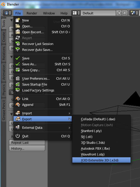 One of its features is the ability to export models into various formats, two of them being X3D and X3DOM.