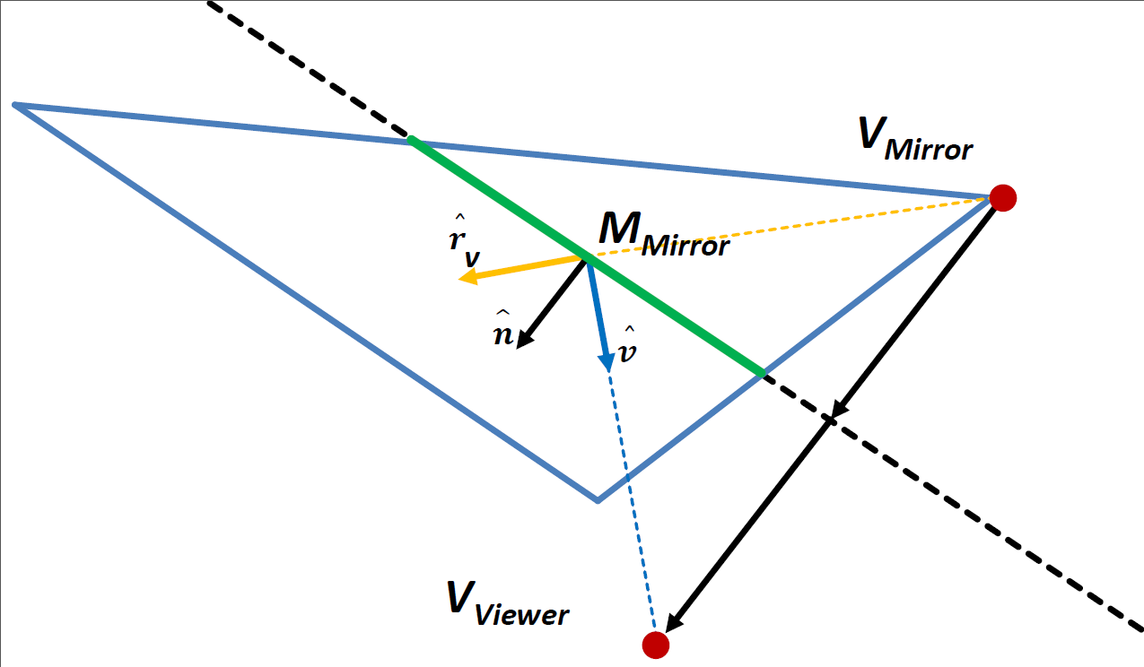 Next, we compute the vector from the mirror's local origin to the viewer and its length.