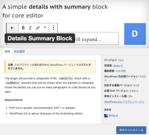 これですか。ここにディテイルを書くと。シンプルでいいですね。うーん、でもサマリーの中で改行しちゃうと、変なことになるね。まあ消せば戻ると。あと、カスタムHTMLにしちゃってアウト。まあそういうもんなのかな?ブロックを識別するHTMLの属性ってなんなんだろう?HTML以外に何かメタな構造情報を管理しているのだろうか?