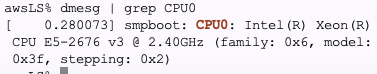 基盤:同じリージョン内のライトセールVM間では50MB/sでsshできることが、引っ越しのファイル転送でわかっています。これはこの2.4GHzというCPUで乱数列を作るのと同等な速度です。確認しますと、まずCPUはコレ。
