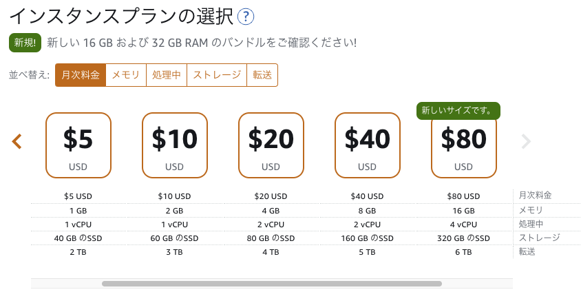 開発:まあ Ubuntu 16版は運用に入ってますから、サーバ動いててメモリは使ってます。でも十分空いてますよね…。CPUは全く同じ。なにしろ利用料金は同じ500円/月ポッキリです。