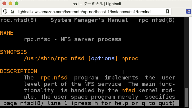 開発:ブラウザでターミナルできるというこのお手軽さ… あれ、nfsd あるじゃん。