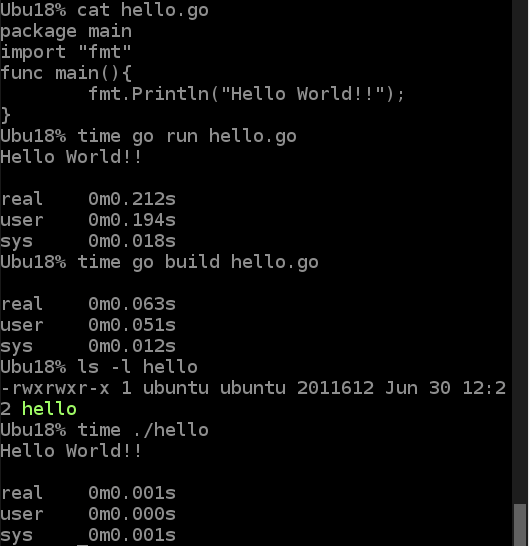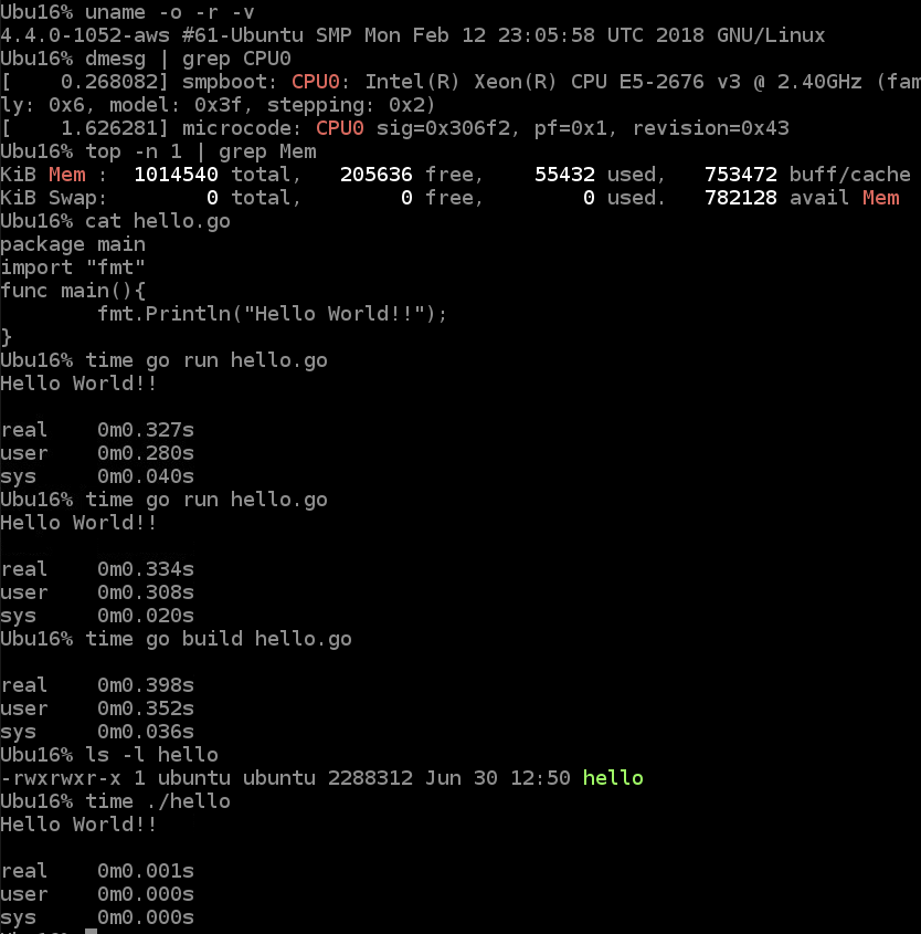 開発:なんですかねこれ、Hello World が 1msて。なんでそんなに軽いのかよ〜♪って。Ubuntu VM でも試しましょう。