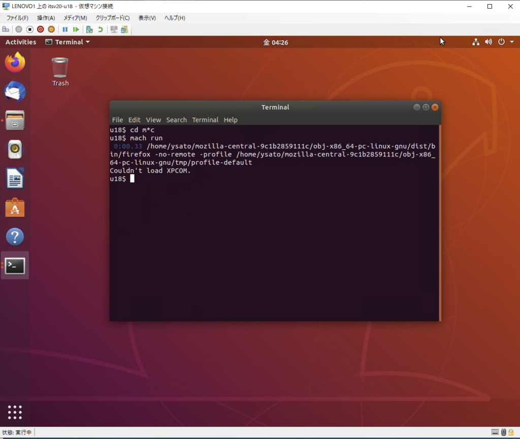 開発:なんか設定というか、-profile で指定しているそれが変なのかな。しかし、ひどいエラーメッセージだねえ。それに、ただ mach run しろってビルドの完成祝賀メッセージにあるのに。