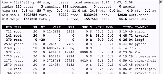 [ 1816.851499] Out of memory: Killed process 7061 (rustc) total-vm:6400040kB, anon-rss:5184104kB, file-rss:0kB, shmem-rss:0kB