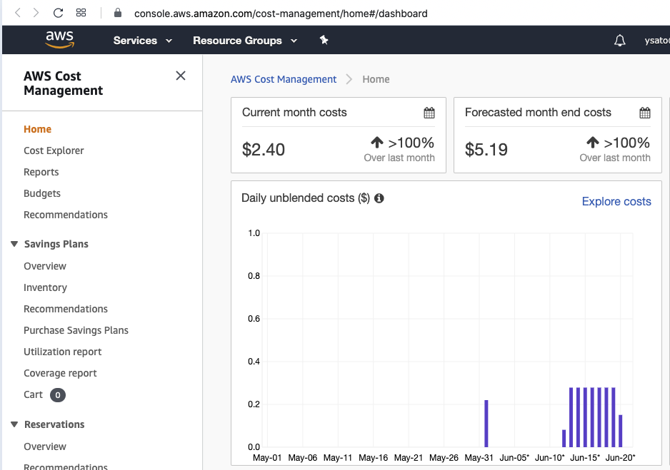 基盤:思うに、Azure と比べて、AWSって自分がどんなリソースを持っていていて、それぞれいくらかかっているかが、紐付けが弱いというか見にくいんですよね。要するに、単にハイパーリンクが無い。それ、どっかに出てたなって思うんですが、サイドバーなりから探し直さないといけないとか。基本、リソースに自分で名前を付けられないというところが問題のように思います。まあ、できるのかも知れませんが。Azureの場合ははじめに名前ありきなんで、とてもわかり易いんです。