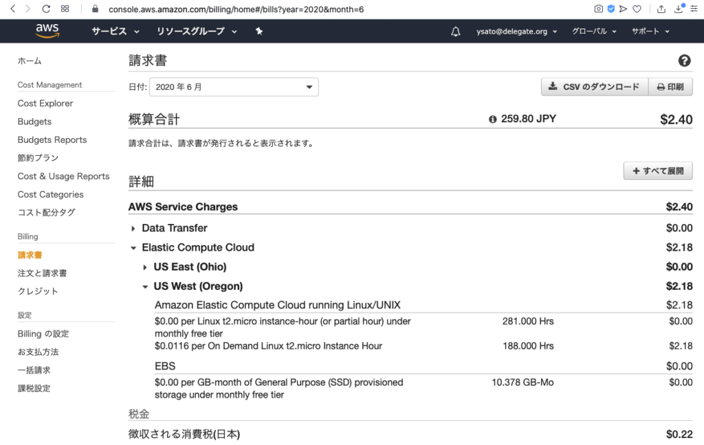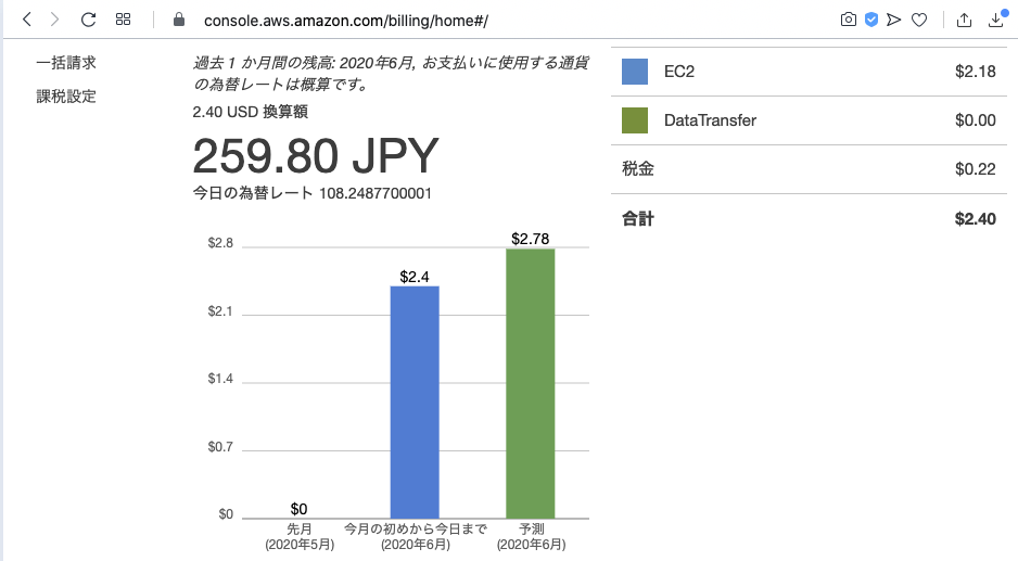 経理:それでAWSのほうですが。こういう請求予報になってます。