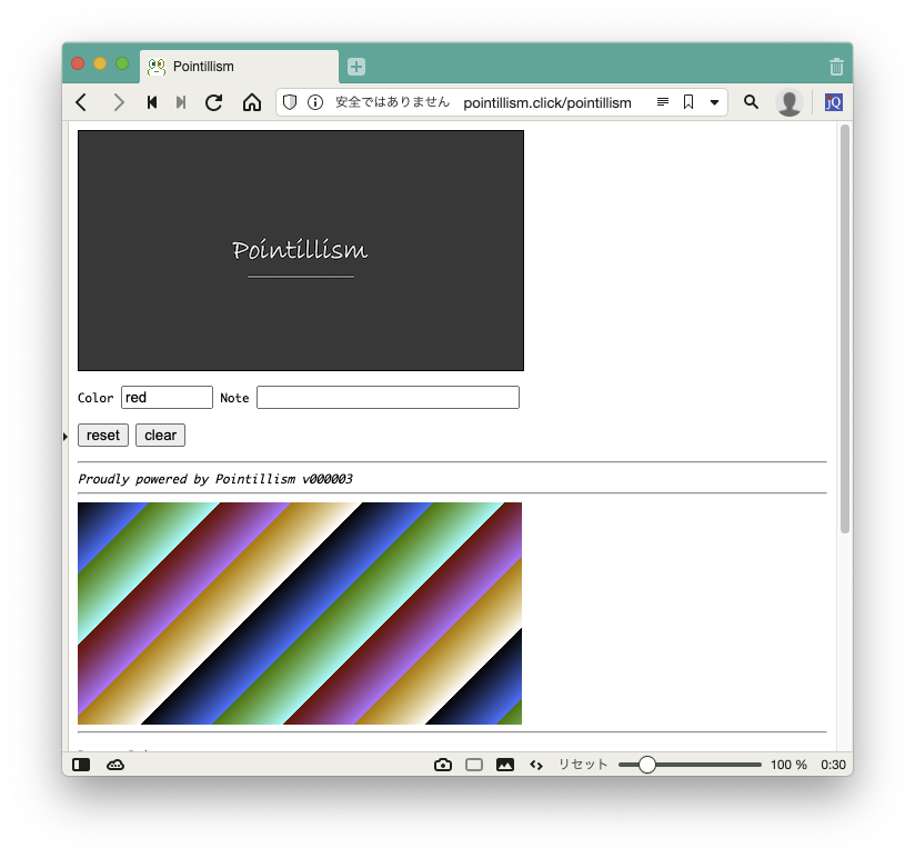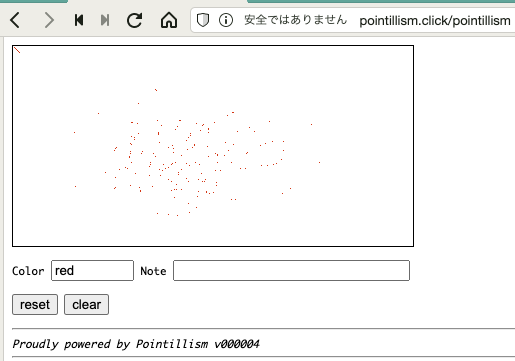 開発:で、さっそくポチポチと点描をしてみたのですが、200点くらいで疲れました。こんな感じ。
