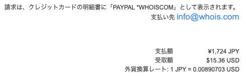経理:速攻でドメイン代金が引き落とされたとメールが。