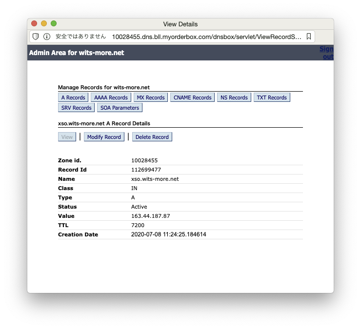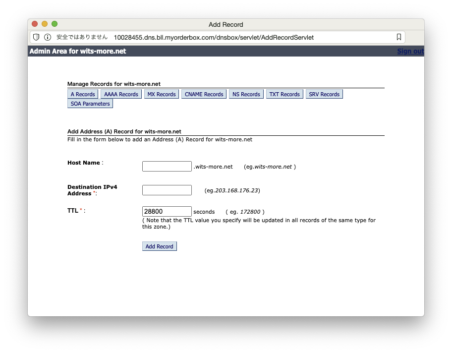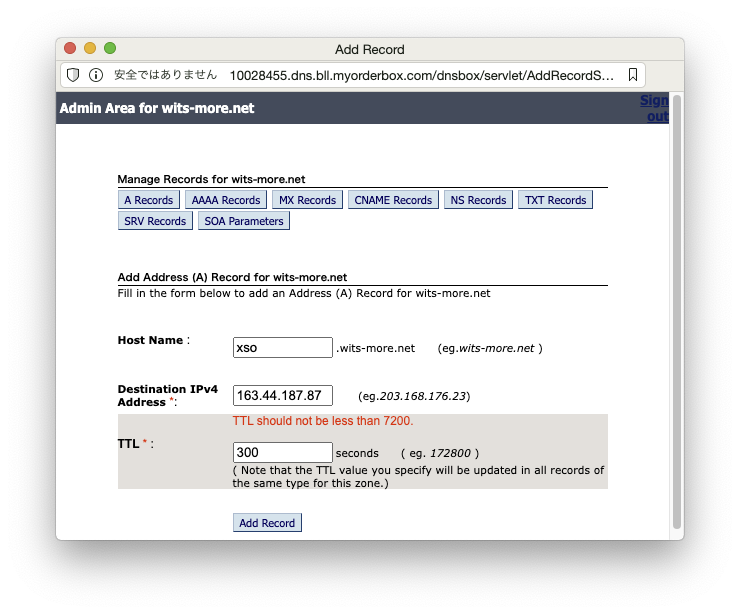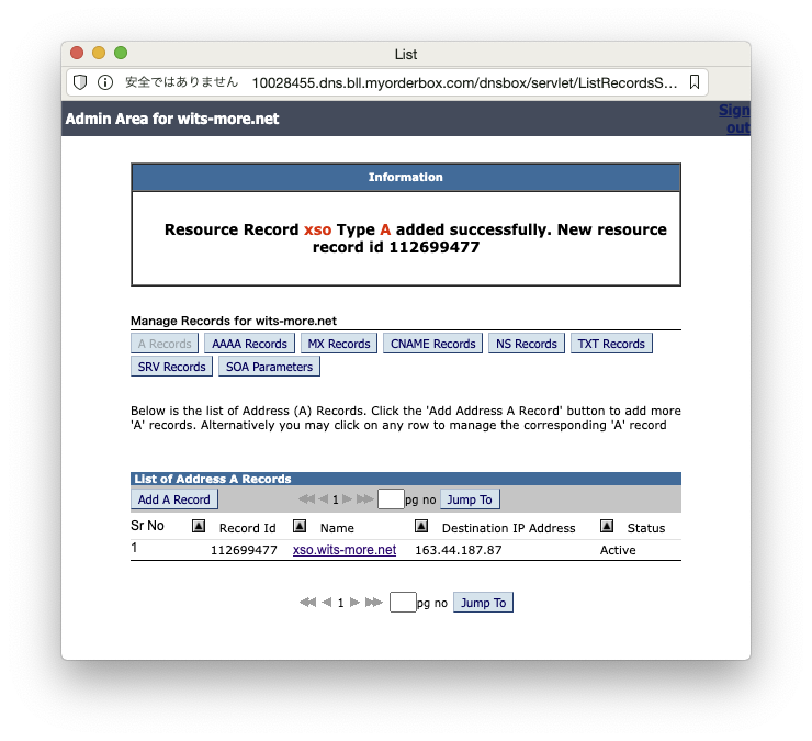 基盤:で、DNSレコードをを追加するには… これですかね?クリック。