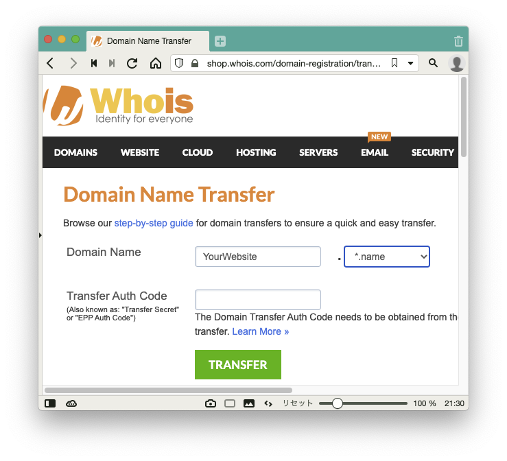 開発:これ、おかしいですね。ひょっとして、whois の管理下に無いドメイン名でサイトを作ると、移管されるまでその先に進まないとか。
