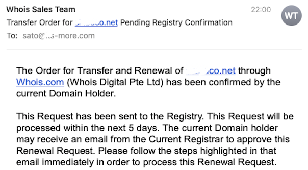 開発:5日以内に処理?今のレジストラからメールを受け取るかもね?そのメールに書かれてるいる手続きに従って…