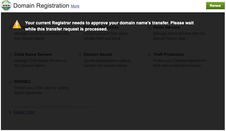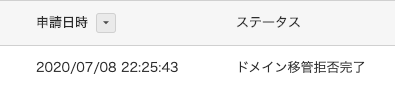基盤:こういうのは、個別のドメイン詳細画面に入ると良いというのを学習済みです。ドメインの移管っと… 見つかりませんね。「へ」の移管はありますが、「から」の移管は無い。… 先人の知恵をぐぐります。ふむ。そうか、アクションは移管先からやるんですね。