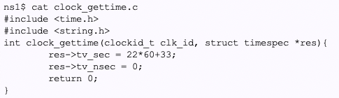 開発:これでフォルトはしなくなったのですが、どうもこちらが提供した時刻を使ってくれない。clock_gettime を見ているようではあるのですが。
