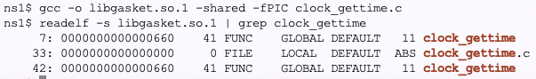 開発:一方不思議なことに、ld.so で動的リンクをトレースすると、clock_gettimeは出てこない。これは、どこかの動的シンボルから先で静的にリンクされてしまってるのかも知れません。