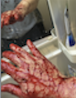 基盤:洗濯おわりました。結論として、この血痕を落とすのは絶望的です。ズボンには膝に穴もあいちゃったし、捨てるのが吉かと。
