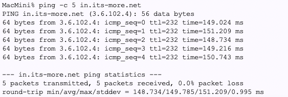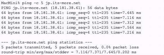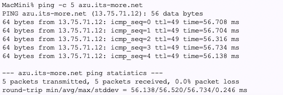 基盤:では ping します。まず Azure。東アジアのどこか。