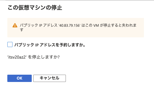 基盤:仮想マシンを止めれば、課金対象は、1日25円のストレージのみになるはず。で、一応起動して接続をテスト… しまった、パブリックIPアドレスを切って島たので、Azureの外からアクセスできません(笑)