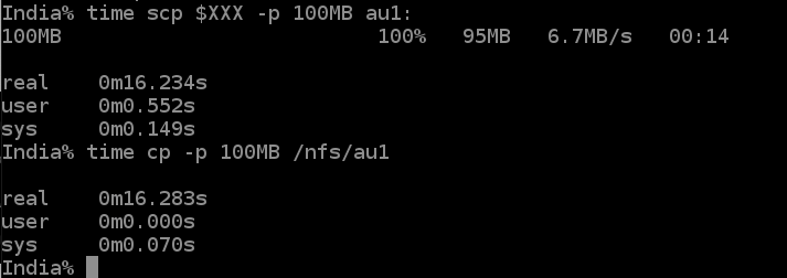 基盤:しかしこれだけ通信が遅いと、暗号化処理がネックになることはなさそうですね。大きなファイルの転送のスループットで言えば、scp でも cp/NFSでも同速度。