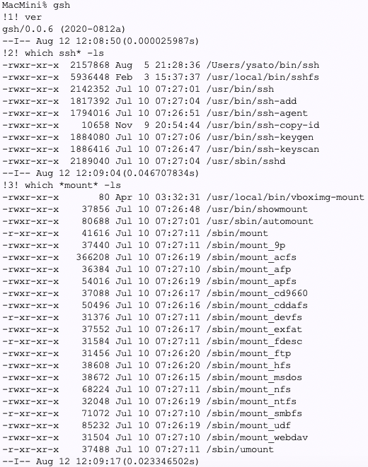 開発:ヒットしたファイルの属性表示には、file コマンドに食わせるとかも良いかもですね。cksum とか wc とかいろいろ有り得る。まあ、xargsでやれるかも知れませんが、shellのビルトイン記法で。