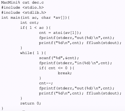 開発:なにか新しい使い方が思いつくかもですよ。たとえば入力した数値を一つカウントダウンして出力するというプログラム。decとしましょう。