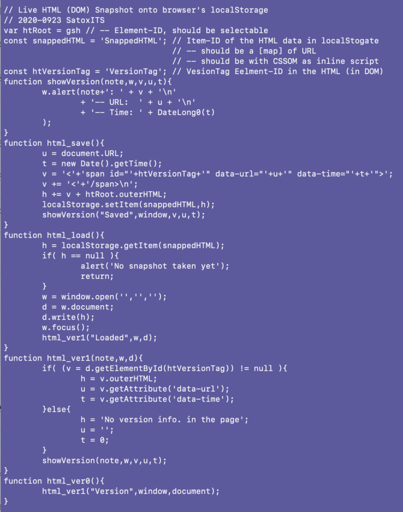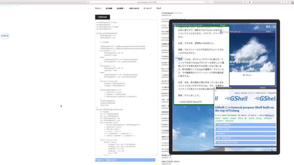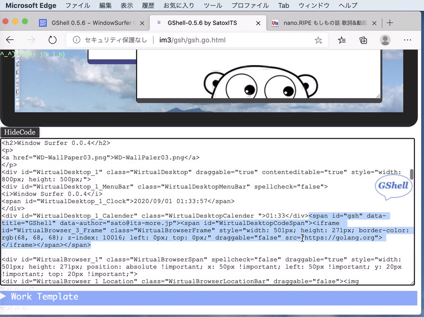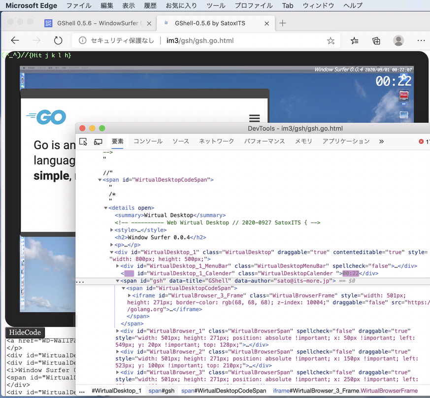 開発:それで、投下物の包み紙は、最外核の id=gshから中間の id=WirtualDesktopCodeSpan のたまねぎ状です。で、gshのほうにつけてあるユーザ定義の data-author="sato@its-more.jp" も付いて来てますから、ここに電子署名を入れておけば認証とアクセス制御が可能です。
