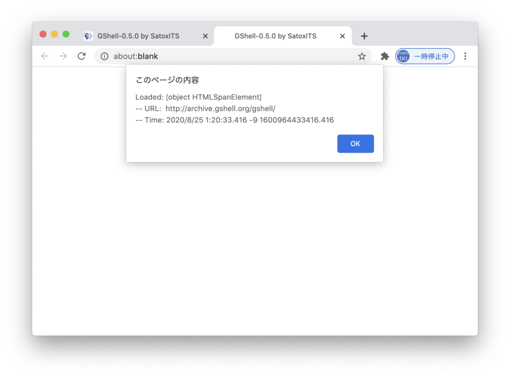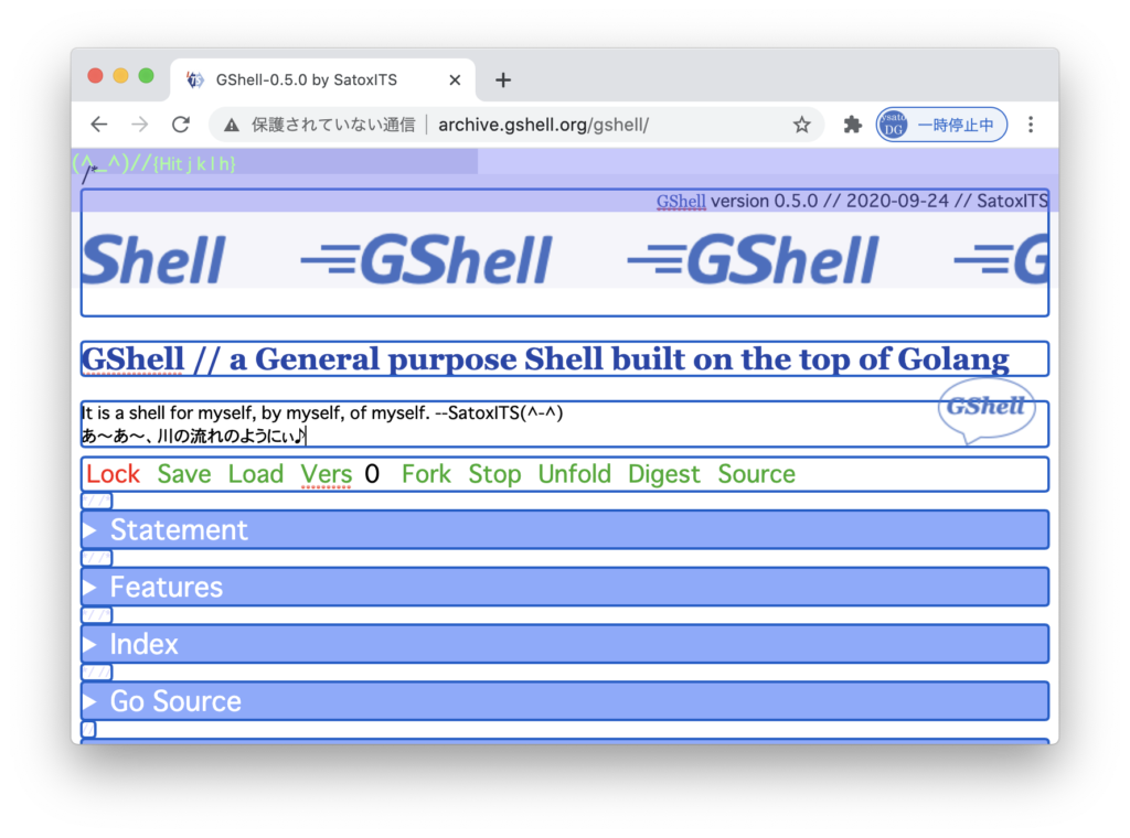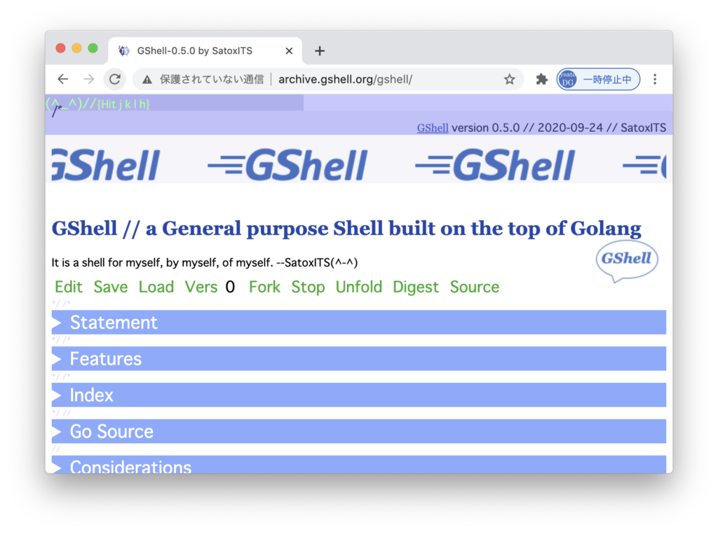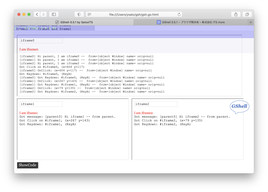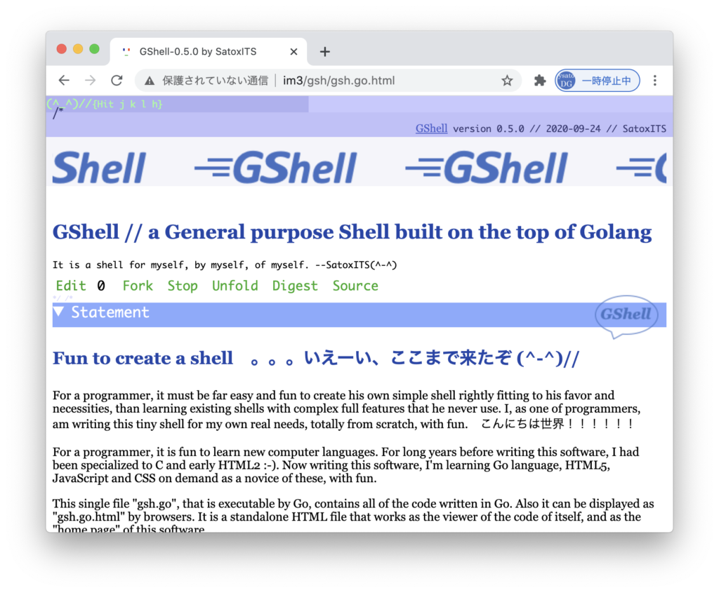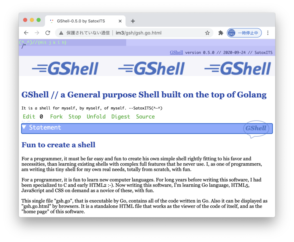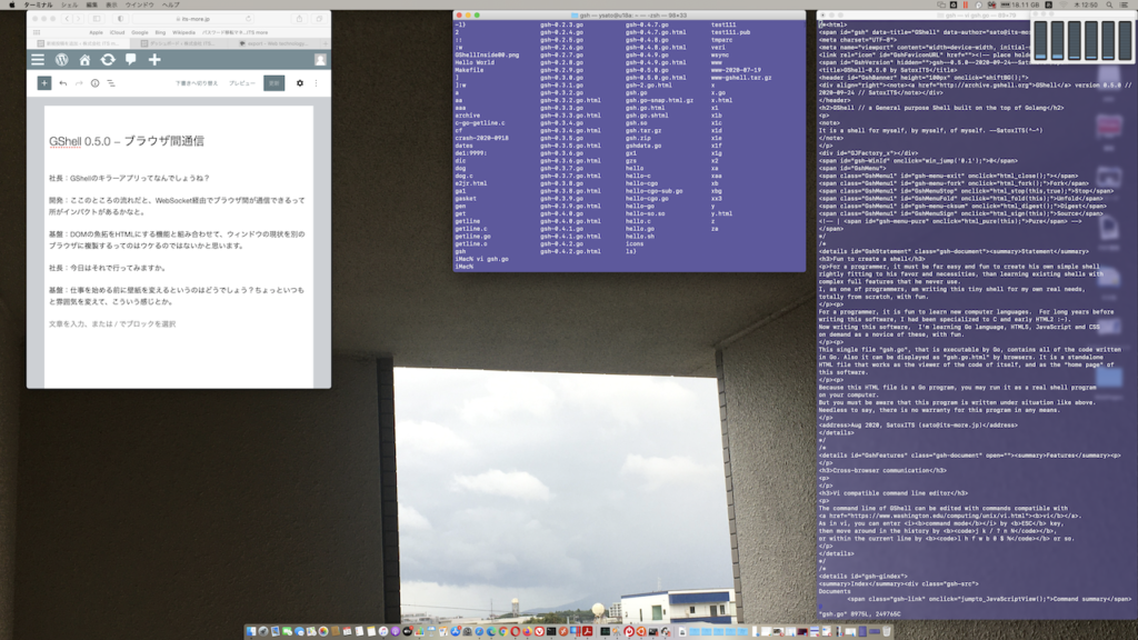 開発:まあ調べるのも手間がかかりますから、実際に動かして確かめます。本日の GShell work product はこの6行です。で、これをブラウザで表示。