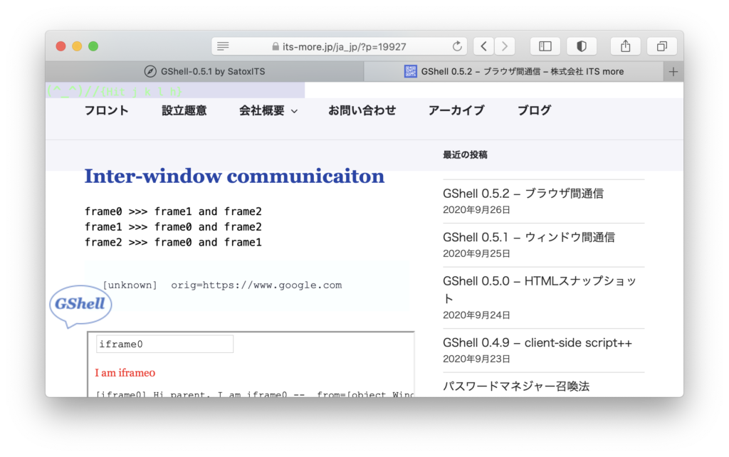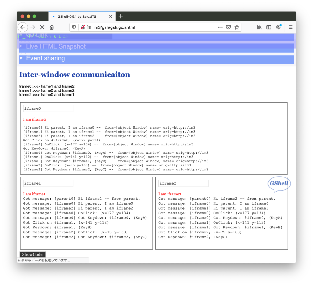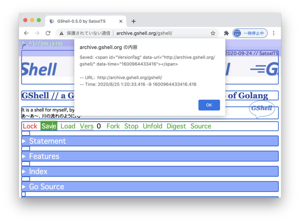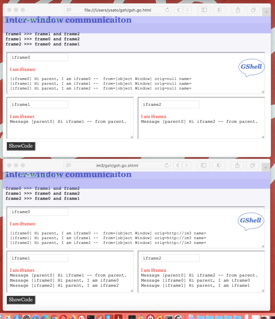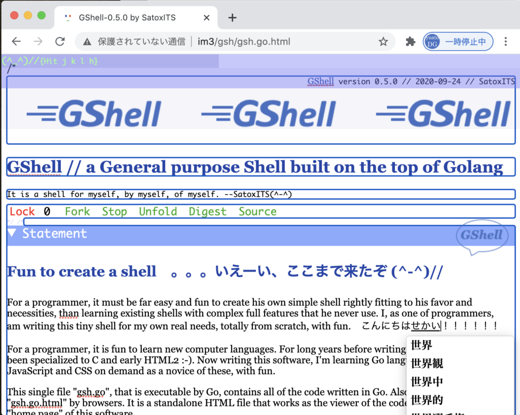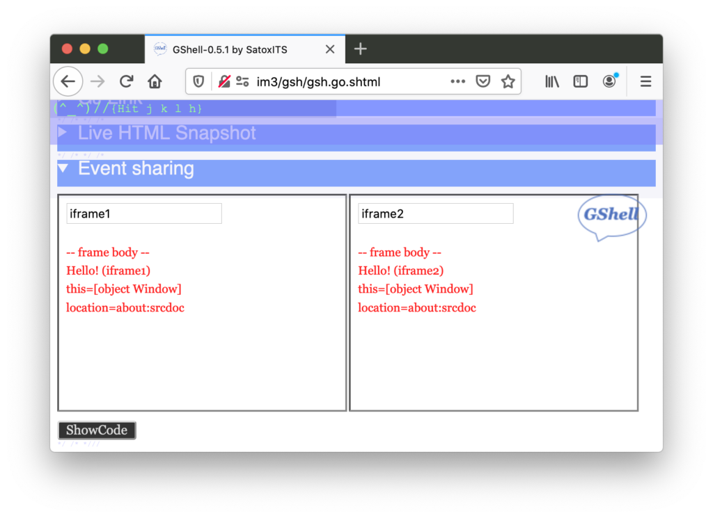 開発:まあ調べるのも手間がかかりますから、実際に動かして確かめます。本日の GShell work product はこの6行です。で、これをブラウザで表示。