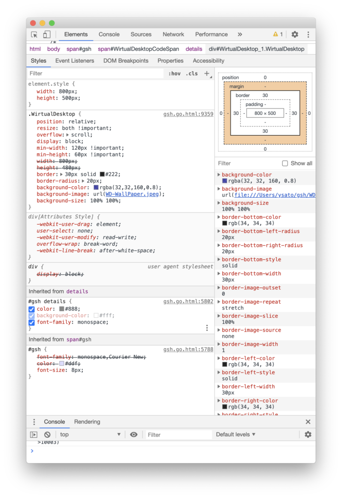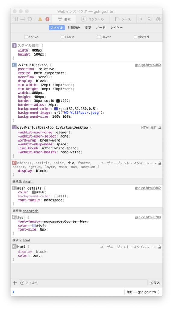 社長:なるほど。だいたいわかりました。いずれにしても、Wirtual Desktopの現在のDOM内容をHTMLダンプしてみればタネも仕掛けも明らかになるということですね。