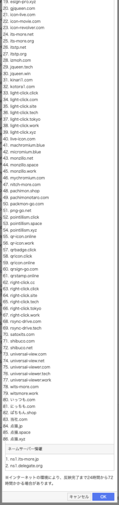 基盤:これまで一発で変更したことがあるのはせいぜい十数ドメインまででしたから、ちょっとどきどきします。では。