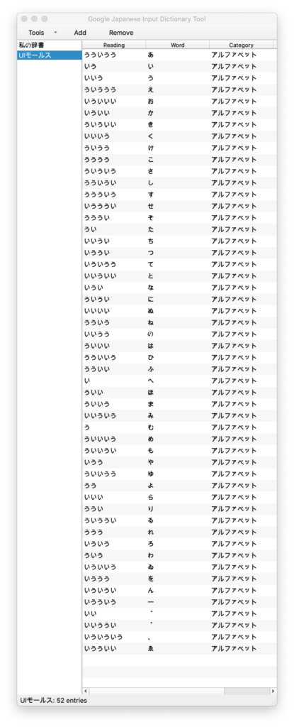 開発:母音文字の連続は日本語的にあまりないですから、他と干渉しなさそうですね。
