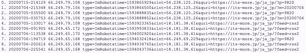 20200707-091655 66.249.64.170 type=ImRobot&time=1593878281&clnt=106.73.xxx.xxx&quri=https://its-more.jp/ja_jp/?p=9820