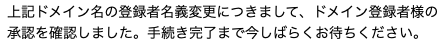 基盤:再び登録者名義変更申請。ていうか、なんでいちいちドメインの選択状態まで戻るんですかね?変更して確認、確定。登録者と管理者にメールが来ました。まあ同じアドレスですけど。クリックして承認。