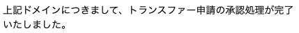 基盤:結果としては、ドメイン名のトランスファーは、約45分で終わりましたね。以下、時系列。
