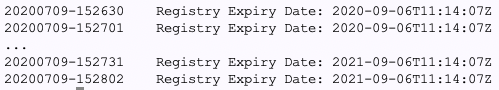 開発:こちらの移管請求に対する反応に30分かかっているのは、拒否の場合の時間が同じだったことを考えると、意図的に挿入されている遅延である可能性が高いですかね。あと、30秒間隔でのwhois DBの観測はこのようになりました。
