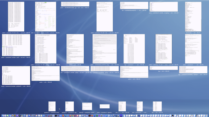 基盤:Show All Windows … これって、ウィンドウの並び方がイマイチですが、サムネール化しても中身がちゃんと動いているし、素晴らしいです。もしこのサムネール状態でキー入力までできたらとんでもないですねw