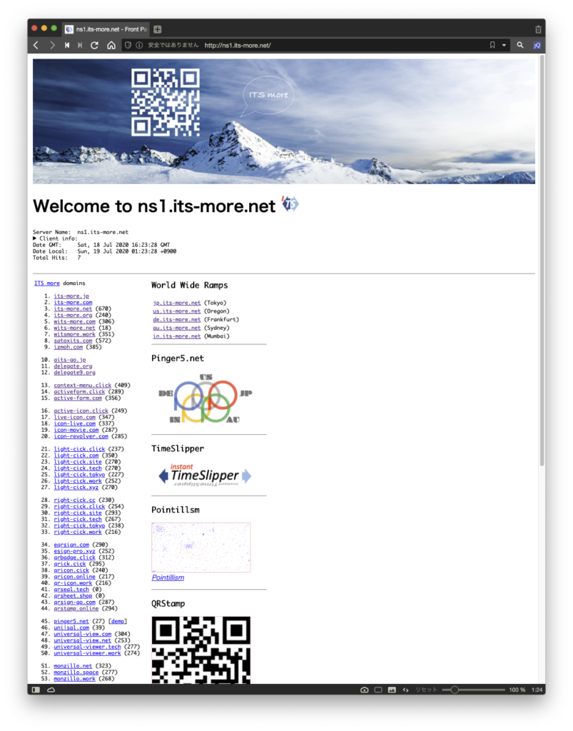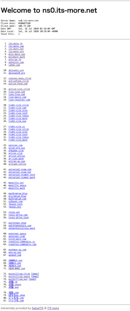 基盤:まずこれが初代のネームサーバ兼コンテンツサーバであった ns0f。Ubuntu 18、OSのみAMI。2020-0628に開始。2020-0704に ns1 に引き継いで、現在ほぼアクセスがなくなりました。