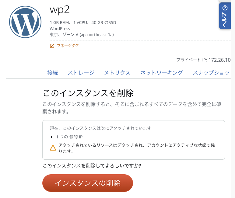 開発:このインスタンスってやたら連呼されているんですが、要するに wp2 と名前を付けた仮想マシンのことですね。