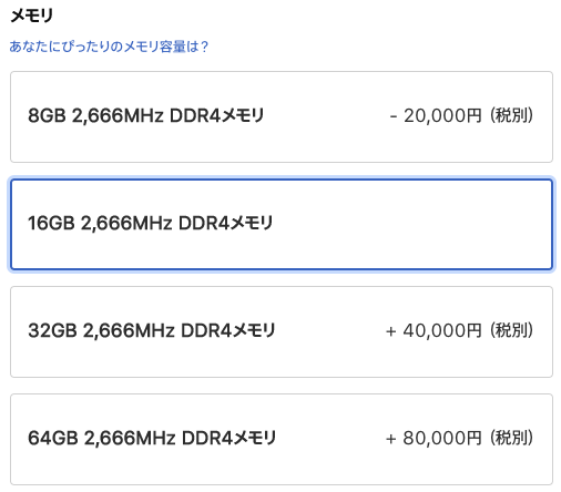 基盤:といいますか、iMacをカスタマイズする時のオプションによると、うちのiMacで16GBから16GB増やすと+40,000円です。