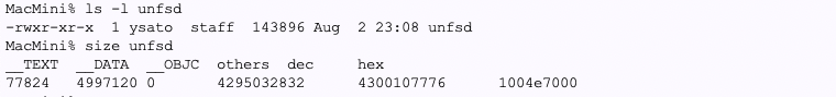 開発:それはそうと、unfsd のバイナリはこんな感じ。