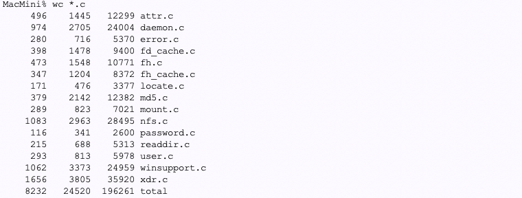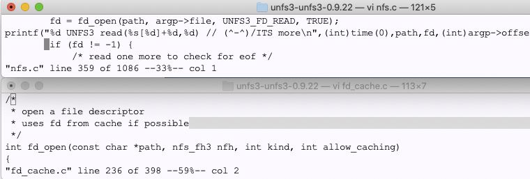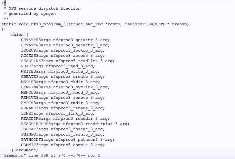 開発:daemon.c はNFSプロトコルの出入り口で、実際の処理をやっているのがnfs.cです。