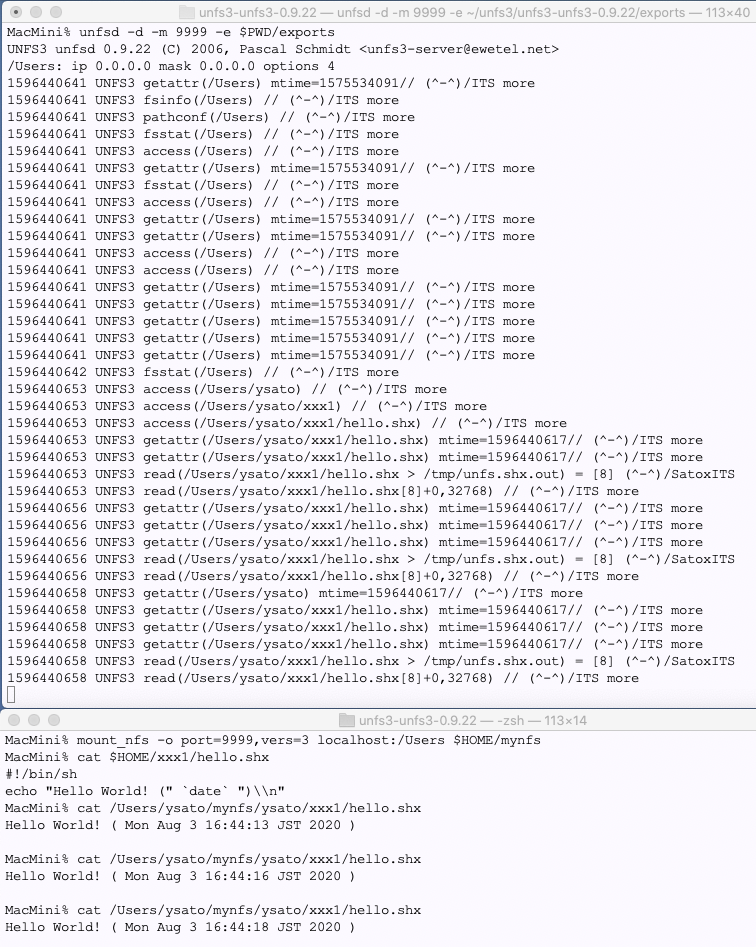 社長:思えば、私が初めてNFSに触ったのは、たぶん 1987年頃の Sun ででした。あの頃、NFSでこういう感じの遊びができたら面白いのにと思ったものですが、当時は商用のSunOSでしたし、たぶん無理でしたね。それが今や、こんなふうにちょこちょこっと出来てしまう。まさに夢のような世界ですね。
