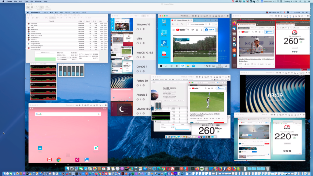 基盤:では、メモリ16GBでは2ゲストOSくらいしか同時に動かせなかったParallelsで、全開行ってみます。