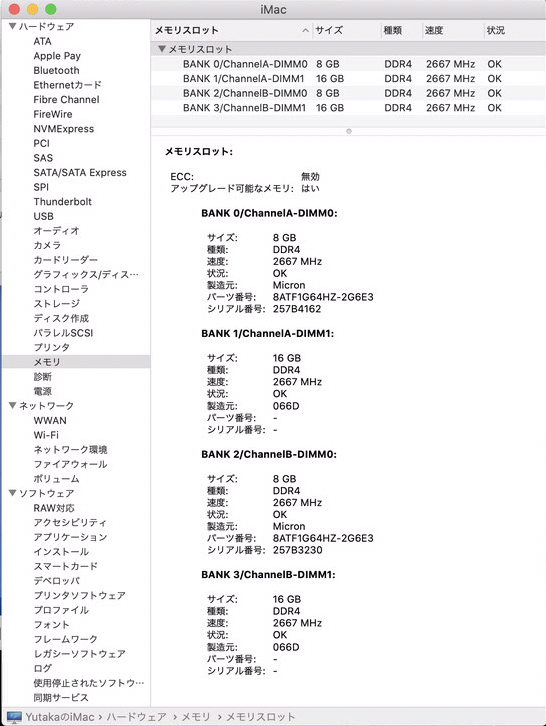 基盤:では、iMacのメモリを増設します。現在16GB。