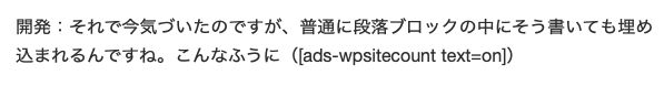 開発:それで今気づいたのですが、普通に段落ブロックの中にそう書いても埋め込まれるんですね。こんなふうに( 910247 )