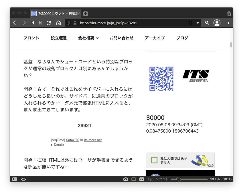 社長:その時、2020年8月7日、9時34分3秒(グリニッジ標準時)、 ITS more社のサイトは30000ビュー(?)に到達しました。