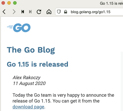 基盤:8月11日にGo 1.15 がリリースされてたので更新しました。