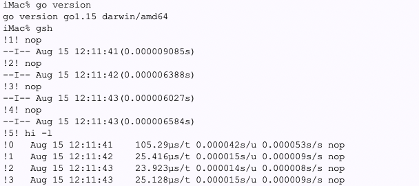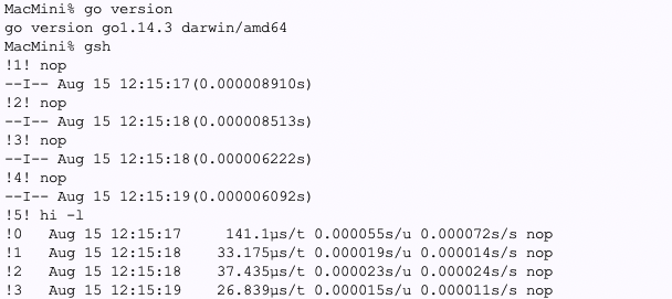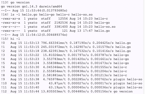 開発:go run は239msが194msに19%高速化します。この理由はホストの10%の性能差には収まらないような。比較のためにCのバイナリは2.6msから2.1msへ。あーこれは20%ですね。CPU以外の足回りも含めると、 MacMini より 20%くらいiMac27のほうが速いみたいな。