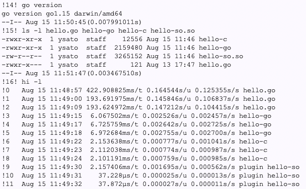 開発:ところが、ビルドされたバイナリの起動は3ms台から6ms台に、2倍くらい遅くなります。なんなんでしょう?プラグインの動的リンクは速くなったように見えますが、これは再現性が無い。